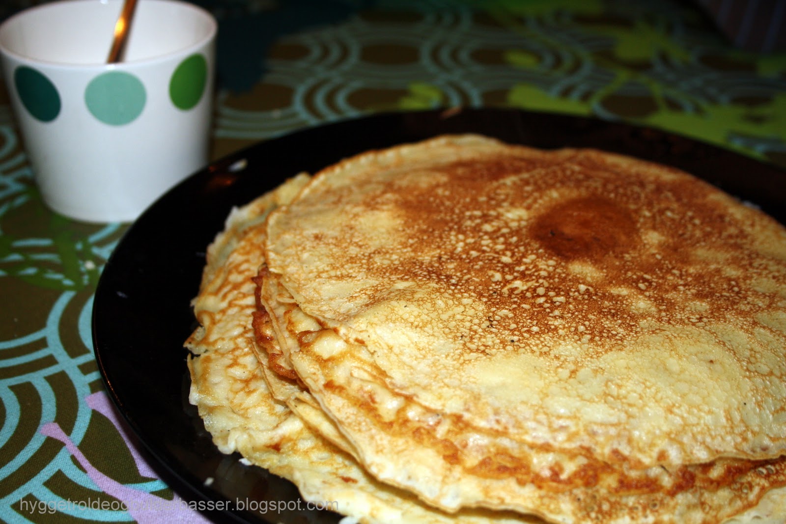 Så blev min gamle hjemkundsskabsmappe fundet frem, som indeholder den gode gamle opskrift på pandekager som aldrig svigter - og hvor svært er det lige at piske mælk, mel, salt, smeltet margarine og æg sammen??